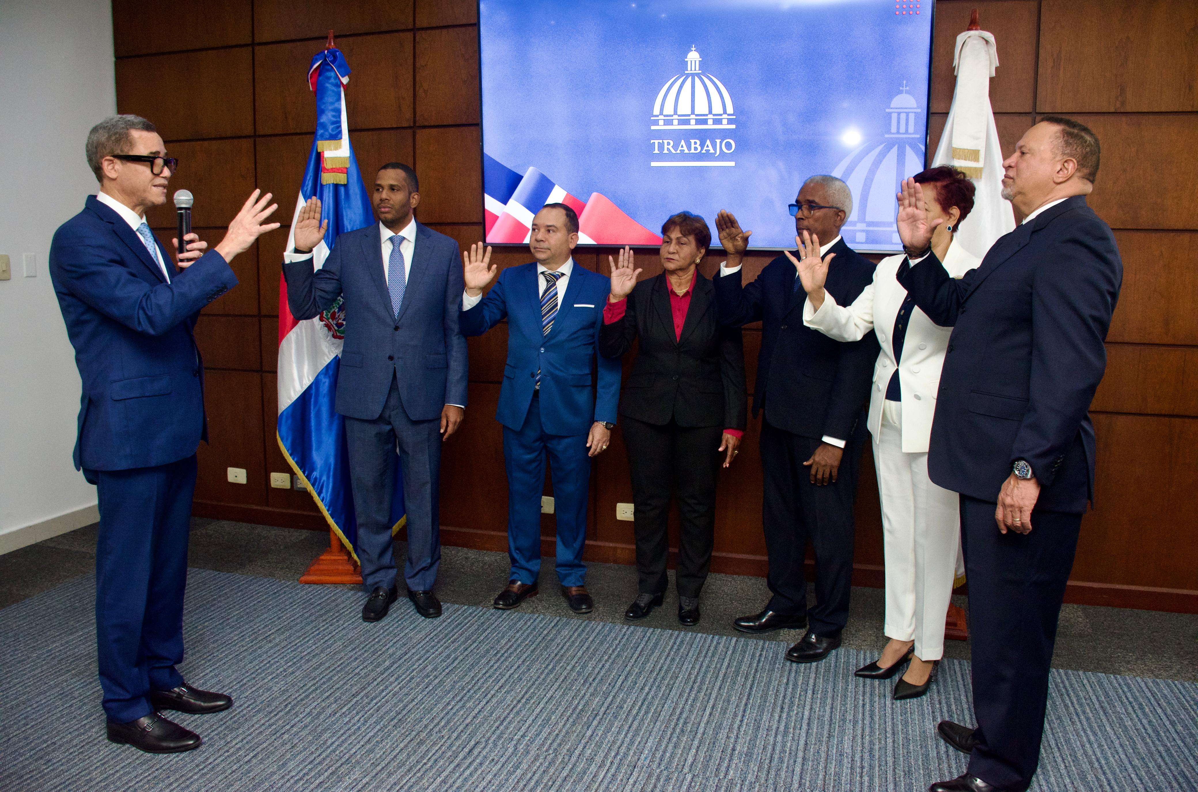 Los nuevos viceministros juramentados son: Leonardo Manuel Gil, de Empleo; Domingo Santana Castillo, de Regulación del Trabajo; Ramón Efren Cuello Madera, de Seguridad Social; Maritza Antonia Contreras Brito, de Mediación, Asuntos Sindicales y Empresariales; Dulce Mercedes Quiñones, de Trabajo Infantil y Sectores Vulnerables; y Franklin Augusto Marte Bueno, de Inspección, Seguridad y Salud en el Trabajo.