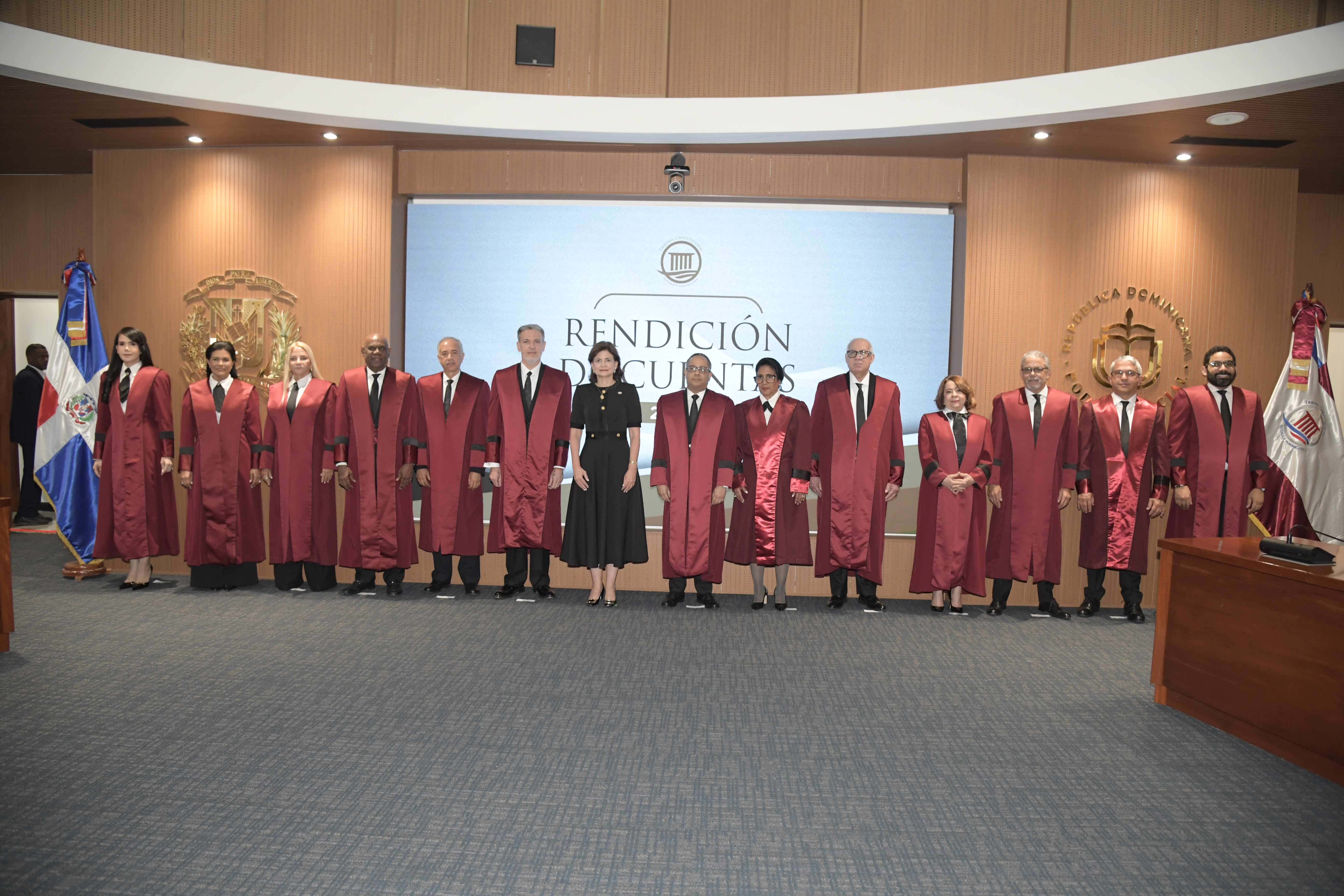 La Audiencia Solemne de Rendición de Cuentas del TC se llevó a cabo en la sala augusta de la Suprema Corte de Justicia y contó con la presencia de los jueces y juezas que integran el Pleno de esta alta corte: Miguel Aníbal Valera Montero, primer sustituto; Eunisis Vásquez Acosta, segunda sustituta; Domingo Gil, Fidias F. Aristy Payano, José Alejandro Vargas Guerrero, Sonia Díaz Inoa, Alba Luisa Beard Marcos, José Alejandro Ayuso, María del Carmen Santana de Cabrera, Manuel Ulises Bonnelly Vega, Army Ferreira y Amaury A. Reyes Torres, además de la secretaria Grace Ventura Rondón.