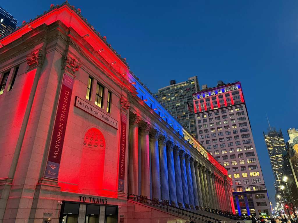 Un total de 16 edificios emblemáticos del estado de Nueva York brillaron con los colores rojo, blanco y azul